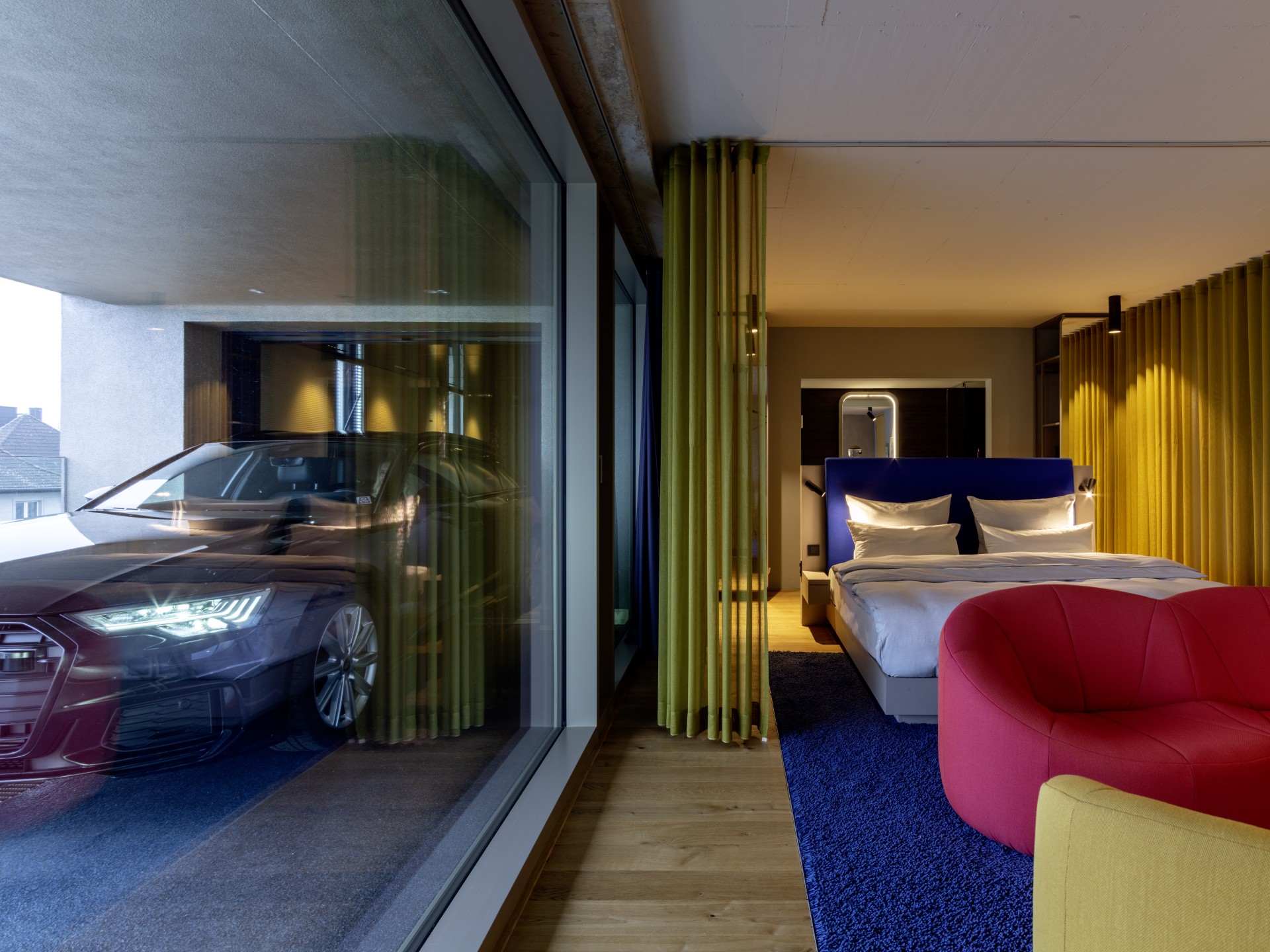 Das 4-Sterne-Hotel liegt im kreativen Stadtteil Flingern. Die hochwertig ausgestatteten Einzel- und Doppelzimmer der Kategorien Smart Room, Smart Double und CarLoft befinden sich in der 1. bis 5. Etage und folgen einem durchdachten Cocooning-Konzept. Stilvolle Möbel von Ligne Roset, Espressomaschinen und State-of-the-Art Smart-TVs sorgen für höchsten Komfort.