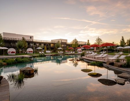 Stilvoll eingebettet liegt die neue Quellenhof See Lodge inmitten der tiefgrünen Naturlandschaft des Passeiertals. In perfekter Harmonie spiegelt sich im 4.500 m² großen See eine atemberaubende alpine Kulisse, gepaart mit dem mediterranen Flair des neuen exklusiven Hauses. Modernes Design und hochwertige Materialien – Stein, Glasfassaden, dunkles Holz – bestimmen die Architektur des leicht maledivisch anmutenden Luxushotels.