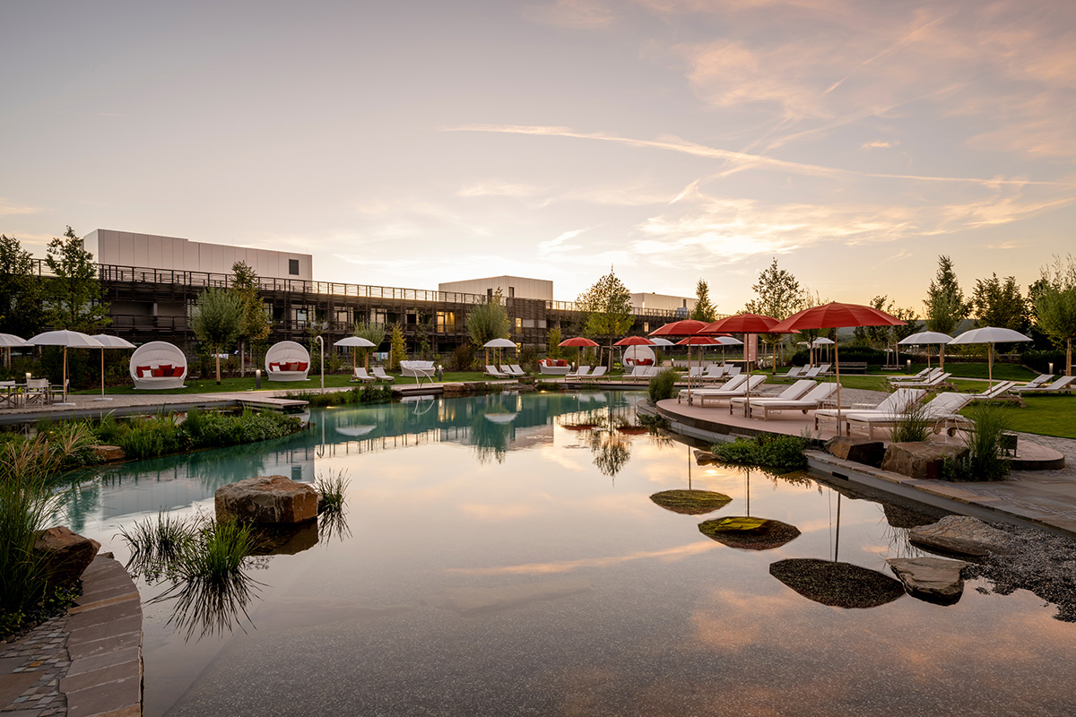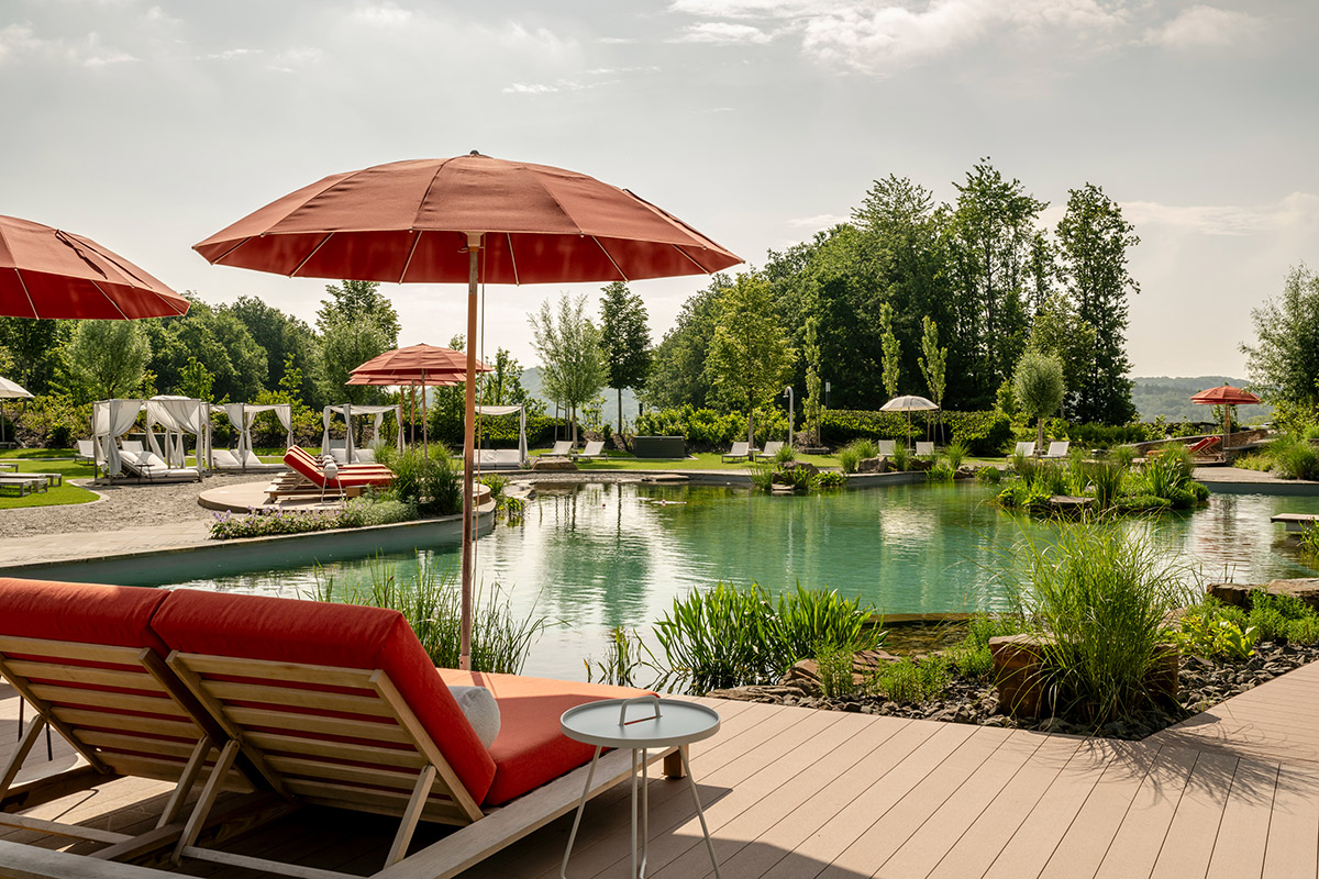 Nachhaltigkeit liegt Kathrin und Christian Sersch besonders am Herzen und Naturverbundenheit ist für sie nicht nur ein Schlagwort, sondern eine Haltung. So werden die Zimmer beispielsweise nur jeden zweiten Tag gereinigt. Mit dem eingesparten Geld werden auf dem Gelände Bäume gepflanzt. Im Restaurant und an der Bar kommen nachhaltige Strohhalme ins Glas und die Cocktailservietten sind zu 100 Prozent kompostierbar. Neben der nachhaltigen Verarbeitung der Produkte in der Küche setzen auch die Köche ein Zeichen und tragen Kochjacken mit dem Green Choice Label. Die Lüftungsanlagen im Gebäude werden ausschließlich mit Frischluft betrieben, in den Zimmern wird durch Betonkernaktivierung gekühlt und geheizt. Zudem stehen den Gästen über 30 E-Ladestationen zur Verfügung. Der Ladevorgang kann komfortabel über die Zimmerkarte gestartet und abgerechnet werden. Für ihr Engagement, Gastgewerbe nachhaltig zu gestalten, wurde die Seezeitlodge 2021 mit dem GreenSign Zertifikat ausgezeichnet. Vergeben wird das Gütesiegel von InfraCert, dem Institut für Nachhaltige Entwicklung in der Hotellerie. Das Nachhaltigkeitsprogramm folgt dem Prinzip: Einfach, transparent, nachhaltig. Erreicht wurde Level vier, von möglichen fünf. Dies bedeutet, dass Anforderungen an nachhaltiges Wirtschaften in hohem Maße erfüllt werden. Im Zuge der Umbauarbeiten im Frühsommer 2023 wurde auch das Energiekonzept erweitert. Bereits im Dezember 2022 wurden Photovoltaik-Elemente auf dem Dach installiert. Seit Januar 2023 ist ein eigenes Hackschnitzelwerk in Betrieb, für Kathrin und Christian Sersch ein wichtiger Meilenstein auf ihrem umweltbewussten Weg. Ein großer Wellnessbereich ist in Sachen Nachhaltigkeit eine Herausforderung. Dennoch gibt es technische Raffinessen, um auch hier sorgfältig zu handeln. So kann beispielsweise im Schwimmbad verdunstetes Wasser beziehungsweise verdunstete Wärme rückgewonnen und wieder in die Schwimmbadheizung eingespeist werden.