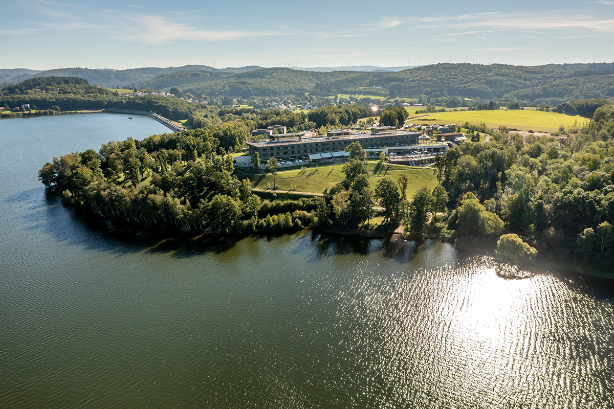Die Seezeitlodge Hotel & Spa liegt im Sankt Wendeler Land im Saarland, direkt am Bostalsee eingebunden in die umgebende Mittelgebirgslandschaft und eng verknüpft mit der regionalen Kulturgeschichte. Bereits die Kelten ließen sich im Naturpark Saar-Hunsrück im Norden des Saarlandes nieder. In exponierter Lage auf einem kleinen bewaldeten Kap versteht sich das Wellnessresort als Rückzugsort inmitten der Natur.